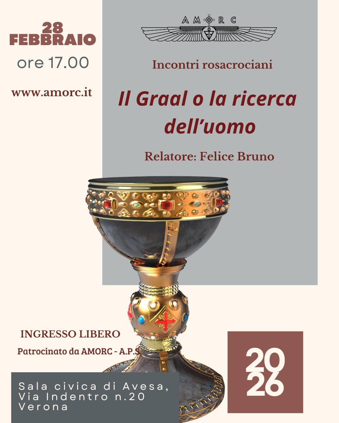 La sapienza rosacrociana ha attraversato le trame del tempo grazie a un filo ininterrotto di conduttori del fuoco sacro della Tradizione, fino a giungere nel 1915 all’edificazione dell’Antico e Mistico Ordine della Rosa-Croce (AMORC), il quale da oltre un secolo compie silentemente e operosamente il suo lavoro a favore dell’umanità. Grazie all’AMORC, la Rosacroce ha potuto far risplendere la sua Luce in tutto il mondo. La conoscenza Tradizionale rosacrociana è stata resa comprensibile all’uomo contemporaneo attraverso un percorso progressivo, basato su un linguaggio chiaro, uniforme e con una coerenza interna, e su un ponderato equilibrio tra studio teorico e pratica degli insegnamenti. La serietà dell’AMORC gli ha permesso di essere, oggi, l’Ordine rosacrociano più numeroso al mondo, accogliendo in sé ricercatori sinceri della Tradizione, senza alcuna distinzione di nazionalità, etnia, genere, condizione sociale o religione. Nell’AMORC si riconosce la scintilla divina che dimora in ciascun individuo, ossia l’anima umana, proveniente da un’unica Anima Universale; per tale motivo, i membri dell’AMORC dicono di far parte di una fraternità mistica.