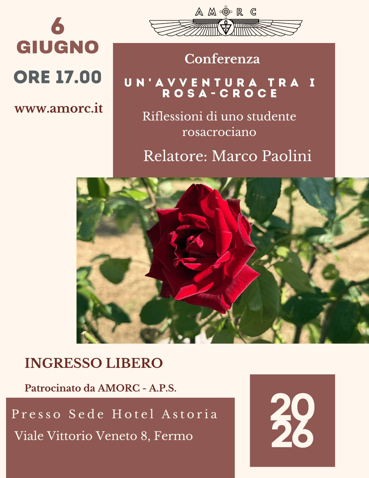 La sapienza rosacrociana ha attraversato le trame del tempo grazie a un filo ininterrotto di conduttori del fuoco sacro della Tradizione, fino a giungere nel 1915 all’edificazione dell’Antico e Mistico Ordine della Rosa-Croce (AMORC), il quale da oltre un secolo compie silentemente e operosamente il suo lavoro a favore dell’umanità. Grazie all’AMORC, la Rosacroce ha potuto far risplendere la sua Luce in tutto il mondo. La conoscenza Tradizionale rosacrociana è stata resa comprensibile all’uomo contemporaneo attraverso un percorso progressivo, basato su un linguaggio chiaro, uniforme e con una coerenza interna, e su un ponderato equilibrio tra studio teorico e pratica degli insegnamenti. La serietà dell’AMORC gli ha permesso di essere, oggi, l’Ordine rosacrociano più numeroso al mondo, accogliendo in sé ricercatori sinceri della Tradizione, senza alcuna distinzione di nazionalità, etnia, genere, condizione sociale o religione. Nell’AMORC si riconosce la scintilla divina che dimora in ciascun individuo, ossia l’anima umana, proveniente da un’unica Anima Universale; per tale motivo, i membri dell’AMORC dicono di far parte di una fraternità mistica.